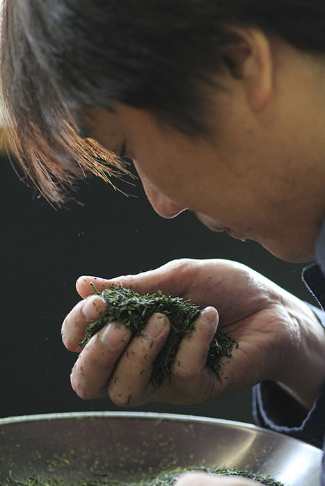 大分県内でも生産量は少なくはありますが、毎年5月の生産期には市内各地からの生葉の持ち込みがあり、自社生葉工場にて仕上加工をおこなっています。